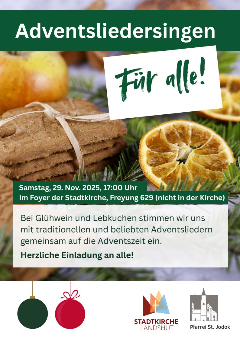 wir möchten Sie/euch in diesem Jahr zu einem *Adventslieder-Singen für alle am 29.11. um 17 Uhr ins Foyer des Büros der Stadtkirche Landshut* einladen Bei Glühwein und Lebkuchen wollen wir…